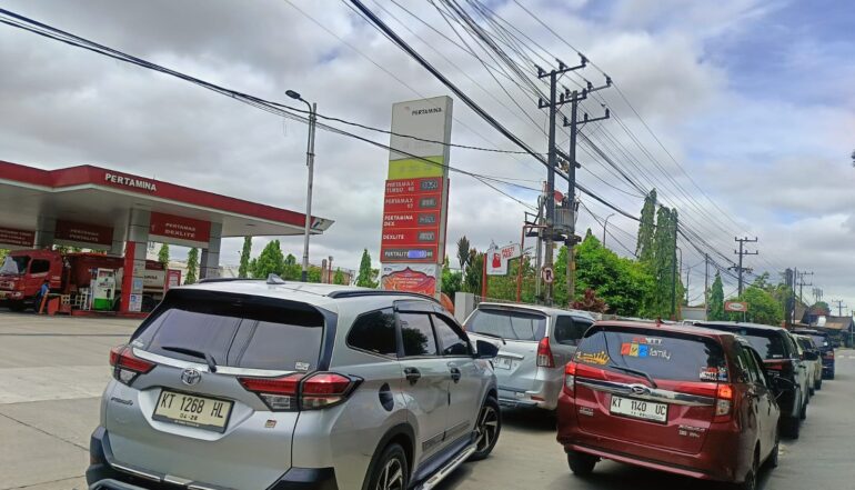 Antrean BBM Mengular di Samarinda, Lonjakan Pemudik Picu Kepadatan
