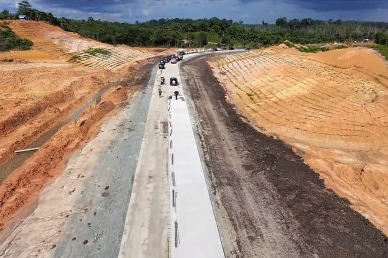 Sementara itu, lebar badan jalan utama tetap dijaga di angka 7 meter—ukuran yang dinilai masih sangat ideal untuk lalu lintas dua arah kendaraan berat (HD).